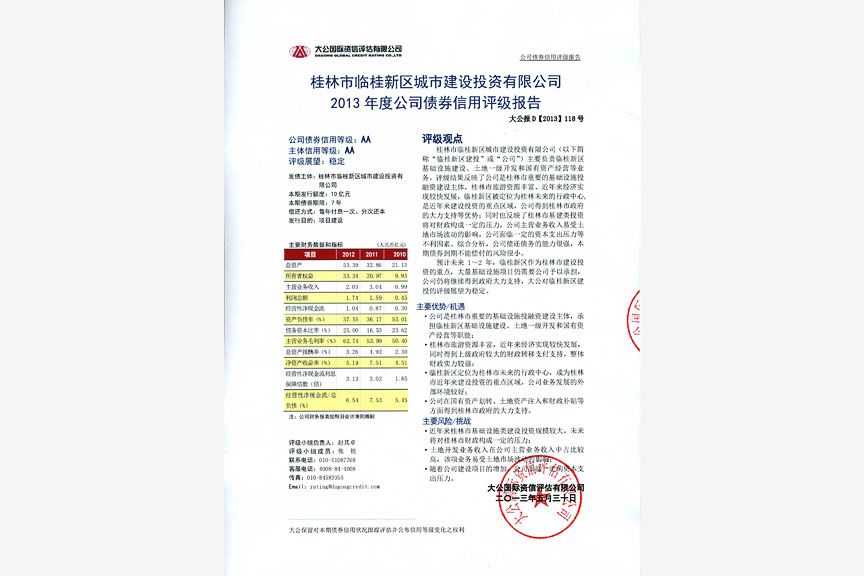 桂林新城投資開發(fā)集團(tuán)有限公司成立于2009年3月26日,是經(jīng)桂林市人民政府批準(zhǔn)成立的國(guó)有獨(dú)資有限責(zé)任公司,公司注冊(cè)資本9億元。公司以臨桂新區(qū)開發(fā)建設(shè)為主導(dǎo),按照市場(chǎng)配置原則,進(jìn)行資本運(yùn)作和投資經(jīng)營(yíng),涉及城市基礎(chǔ)設(shè)施建設(shè)、房地產(chǎn)開發(fā)、物資貿(mào)易、廣告?zhèn)髅?、教育、航空、旅游、酒店?jīng)營(yíng)、政府特許經(jīng)營(yíng)業(yè)務(wù)等投資領(lǐng)域。擁有全資子公司9家,參股公司8家。