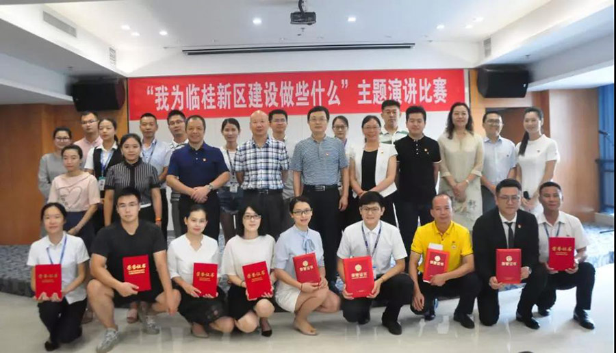 7月30日上午10時(shí),由臨桂新區(qū)管委會(huì)黨總支主辦、臨桂新區(qū)管委會(huì)工會(huì)、新城投資集團(tuán)工會(huì)聯(lián)合承辦的“我為臨桂新區(qū)建設(shè)做些什么”主題演講比賽在新城商務(wù)酒店辦公樓10樓會(huì)議廳舉行。