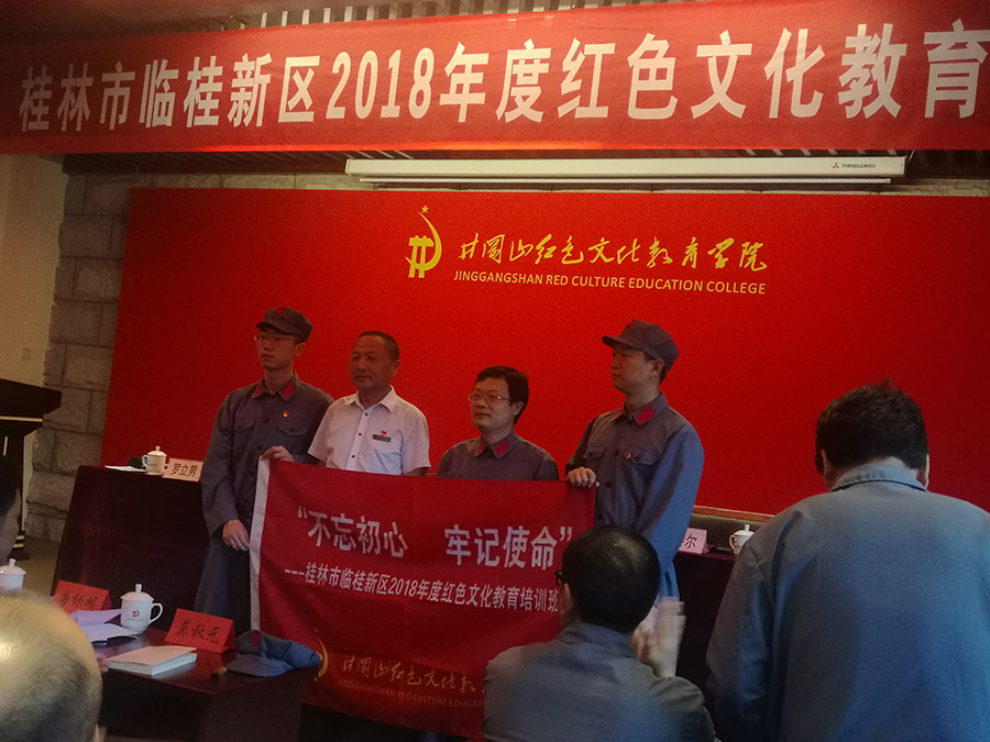 為認(rèn)真貫徹落實(shí)《干部教育培訓(xùn)工作條例》,抓好黨員干部隊(duì)伍建設(shè),培養(yǎng)和造就一支高素質(zhì)的黨員干部隊(duì)伍,進(jìn)一步強(qiáng)化臨桂新區(qū)黨員干部黨性思想、紅色文化思想教育,在中國共產(chǎn)黨成立97周年前夕,臨桂新區(qū)工委組織新區(qū)黨員干部、新城投資集團(tuán)黨員干部,于5月26日前往井岡山紅色文化教育學(xué)院,開展為期5天的以“不忘初心,牢記使命”為主題的紅色文化教育培訓(xùn)。參加第一期教育培訓(xùn)的學(xué)員共計(jì)46人。臨桂新區(qū)工委副書記唐標(biāo)明、工委委員李星明、 工委委員蔣玖明、工委委員莫秋元、新區(qū)管委黨總支副書記李鋒、新城投資集團(tuán)黨支部副書記鄧仁友均以普通黨員身份參加第一期紅色文化教育培訓(xùn)。