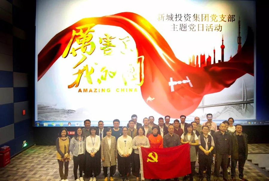 2018年4月9日下午,新城投資集團黨支部組織全體黨員、入黨積極分子、申請入黨培訓(xùn)班學(xué)員及群團工作人員集中觀看了大型紀錄片《厲害了,我的國》。觀影前,大家舉黨旗合影留念,齊聲吶喊“厲害了,我的國”,表達內(nèi)心的激動與喜悅,記錄最美瞬間。