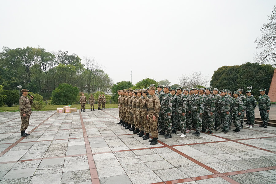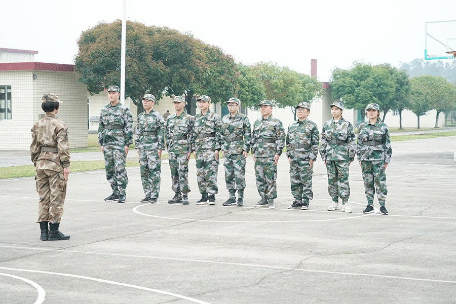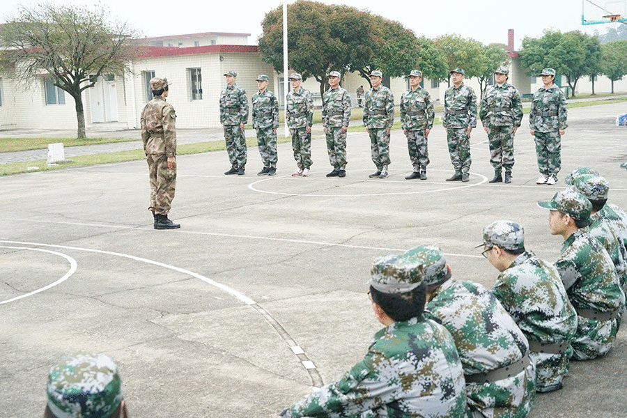 抵達(dá)訓(xùn)練場地后,全體人員換上迷彩服,拉開了一天封閉軍訓(xùn)的序幕。