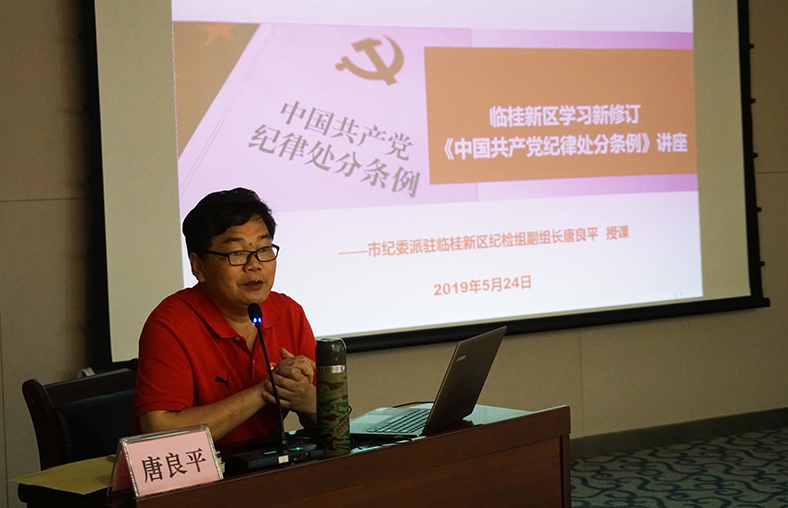 5月24日上午,臨桂新區(qū)舉辦《中國共產(chǎn)黨紀(jì)律處分條例》輔導(dǎo)講座。邀請市紀(jì)委派駐臨桂新區(qū)紀(jì)檢組副組長唐良平同志作《中國共產(chǎn)黨紀(jì)律處分條例》輔導(dǎo)報告。臨桂新區(qū)工委副書記、管委會副主任唐標(biāo)明,臨桂新區(qū)工委委員、管委會副主任陳清,臨桂新區(qū)工委委員、管委會副主任文杰,臨桂新區(qū)工委委員、管委會副主任蔣玖明,新城投資集團黨支部書記、總經(jīng)理周道林以普通黨員身份參加此次講座。臨桂新區(qū)黨總支全體黨員、預(yù)備黨員、發(fā)展對象及入黨積極分子參加學(xué)習(xí)。
