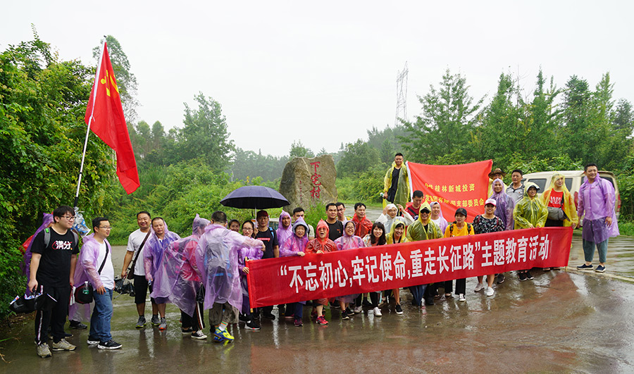 在中國共產(chǎn)黨建黨98周年之際,為進(jìn)一步提升支部黨員的黨性修養(yǎng),緬懷革命先輩,牢記革命歷史,繼承和弘揚(yáng)偉大的長征精神,6月27日,新城投資集團(tuán)黨支部全體黨員組織了“不忘初心,牢記使命,重走長征路”主題黨日活動(dòng),來到全州縣紹水鎮(zhèn)沿著紅軍當(dāng)年的足跡,追憶紅軍的光輝歲月,學(xué)習(xí)紅軍精神,開展重走長征路活動(dòng)。臨桂新區(qū)工委委員、管委會(huì)副主任文杰,市紀(jì)委駐臨桂新區(qū)紀(jì)檢組副組長唐良平,新城投資集團(tuán)黨支部書記、總經(jīng)理周道林以普通黨員身份參加活動(dòng)。