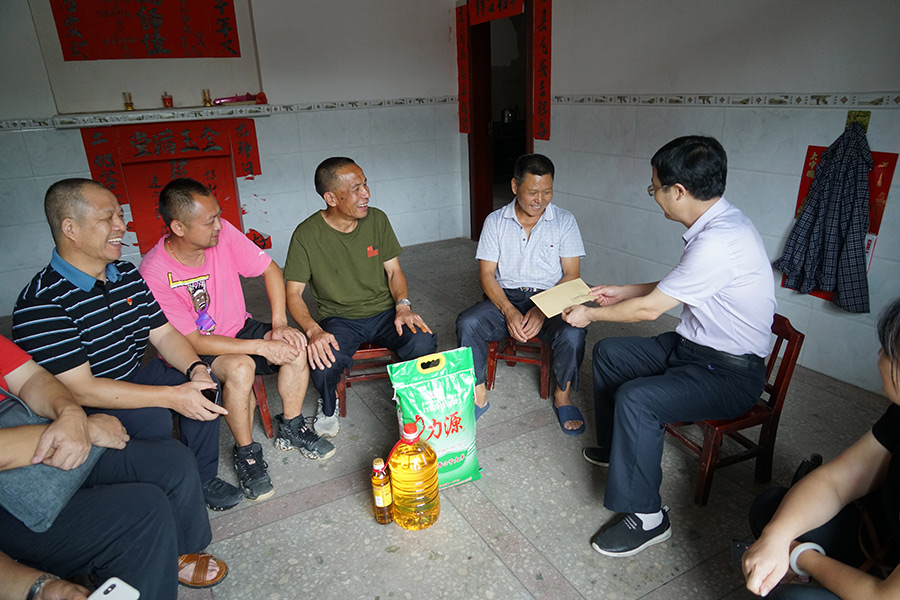 為紀(jì)念建黨98周年,在實(shí)踐中深入學(xué)習(xí)貫徹習(xí)近平新時(shí)代中國(guó)特色社會(huì)主義思想和黨的十九大精神,營(yíng)造“不忘初心、牢記使命”主題教育氛圍,7月19日臨桂新區(qū)工委及臨桂新區(qū)黨總支下轄的機(jī)關(guān)黨支部、新城投資集團(tuán)黨支部赴資源縣兩水苗族鄉(xiāng)煙竹村(管委、新城投資集團(tuán)幫扶極度貧困村)開(kāi)展“不忘初心,牢記使命”主題黨日活動(dòng)。臨桂新區(qū)工委副書(shū)記、管委會(huì)副主任唐標(biāo)明走訪慰問(wèn)貧困黨員,市紀(jì)委派駐臨桂新區(qū)紀(jì)檢組副組長(zhǎng)唐良平,新城投資集團(tuán)黨支部書(shū)記、董事長(zhǎng)、總經(jīng)理周道林陪同慰問(wèn)。