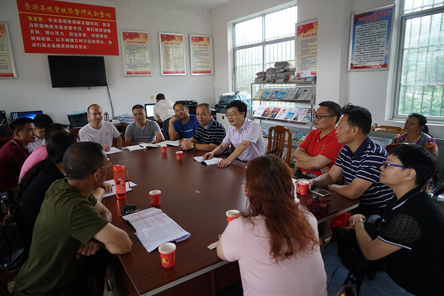 慰問(wèn)組在村委辦公室與資源縣組織部分管領(lǐng)導(dǎo)、兩水鄉(xiāng)鎮(zhèn)分管領(lǐng)導(dǎo)、煙竹村支書(shū)、村主任、市農(nóng)業(yè)局分管扶貧領(lǐng)導(dǎo)、派駐第一書(shū)記、派駐隊(duì)員見(jiàn)面并進(jìn)行座談,調(diào)研了解村組脫貧攻堅(jiān)任務(wù)和情況。唐標(biāo)明詳細(xì)詢問(wèn)了駐村工作隊(duì)員近期的工作、生活情況,并與大家共同探討、謀劃2019年產(chǎn)業(yè)脫貧工作的各項(xiàng)目標(biāo)和任務(wù)。唐標(biāo)明對(duì)兩名駐村隊(duì)員的工作給了充分的肯定,同時(shí)對(duì)下一步工作提出了三方面的要求:一是要團(tuán)結(jié),積極融入村兩委班子,服從村級(jí)管理,在工作上要維護(hù)村黨支部書(shū)記的統(tǒng)一領(lǐng)導(dǎo);二是多為村脫貧攻堅(jiān)想辦法、出思路,打好年度脫貧攻堅(jiān)戰(zhàn);三是統(tǒng)籌利用自身優(yōu)勢(shì),多為村級(jí)爭(zhēng)取扶貧項(xiàng)目。