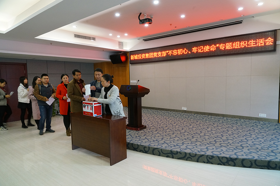 12月10日,新城投資集團(tuán)黨支部召開“不忘初心、牢記使命”專題組織生活會和民主評議黨員。集團(tuán)公司黨支部書記、董事長周道林主持會議,集團(tuán)公司全體黨員參加會議。