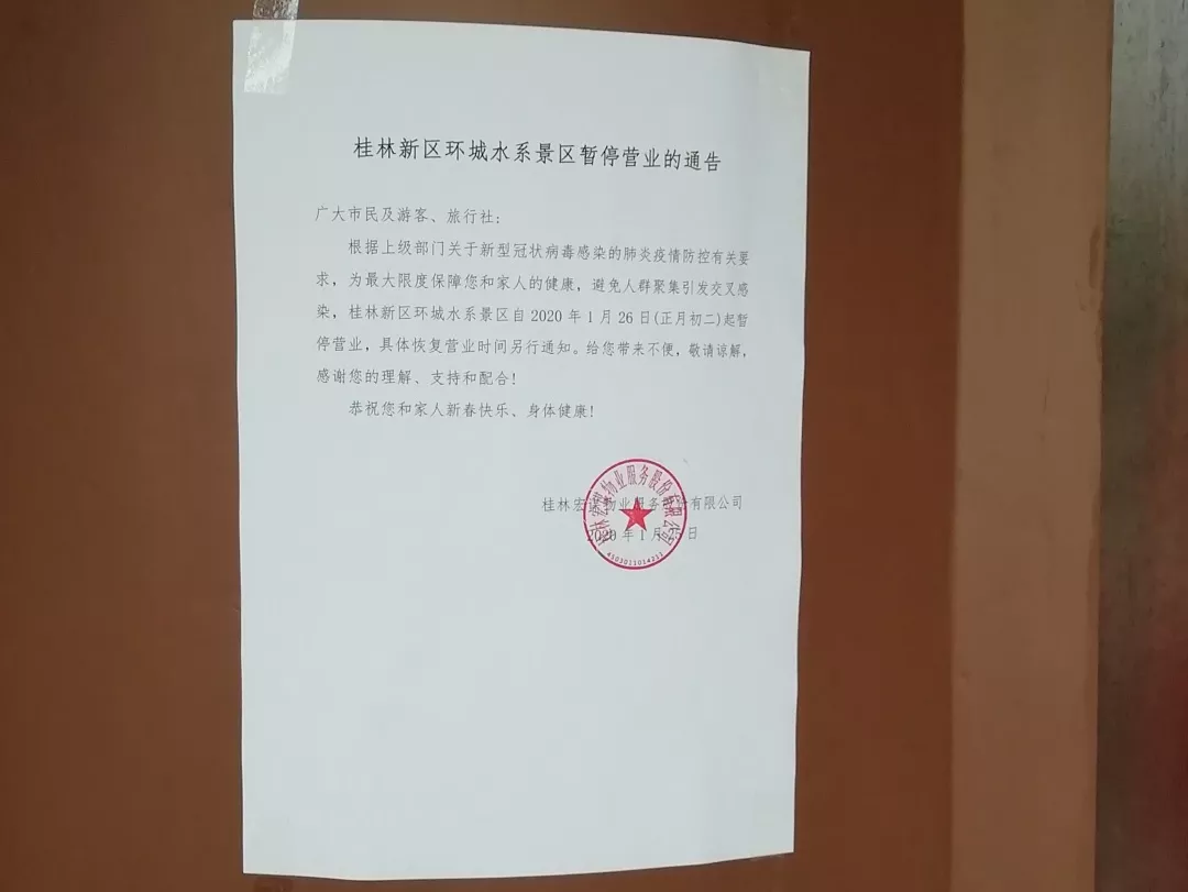 根據(jù)上級部門關于新型冠狀病毒感染的肺炎疫情防控有關要求,落實并發(fā)布景區(qū)暫停營業(yè)通告。