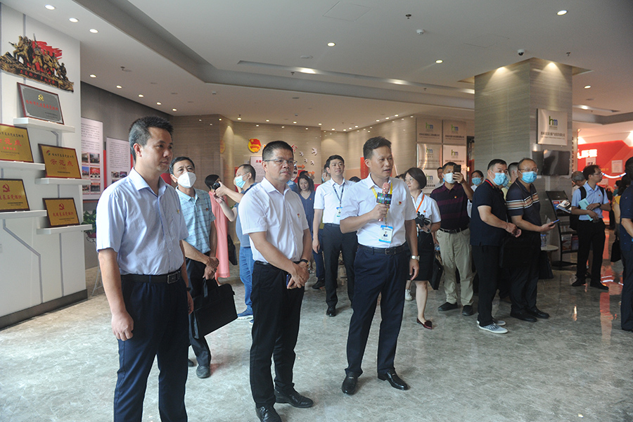 上圖為文杰接待參觀團(tuán),鄧仁友介紹集團(tuán)黨建經(jīng)驗