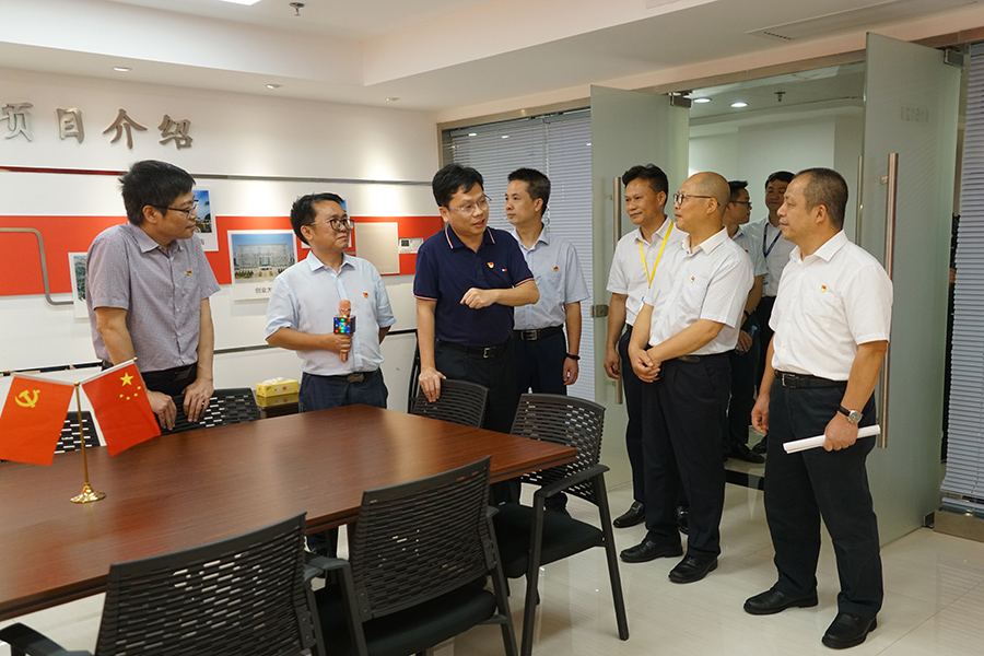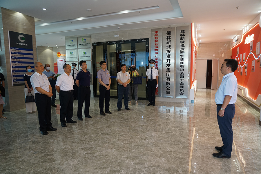 臨桂新區(qū)工委委員、管委會副主任文杰,市國資委黨委委員、組織部部長趙慶華,新區(qū)工委組織人事部部長梁利,集團(tuán)黨總支委員陪同參觀。