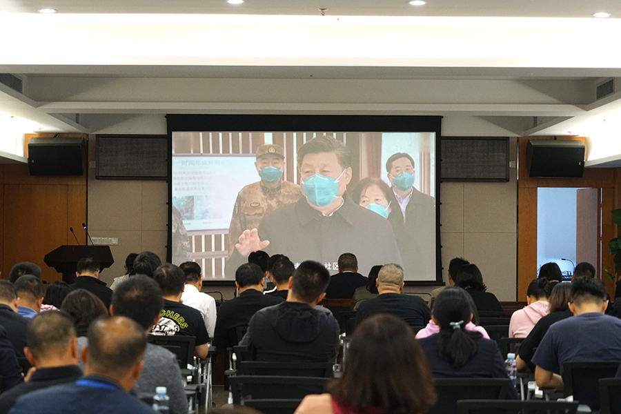 課后,全體黨員領(lǐng)導(dǎo)干部集體觀看了公益專題片《戰(zhàn)“疫”一線黨旗紅》。影片再現(xiàn)了新冠肺炎疫情暴發(fā)以來(lái),在以習(xí)近平同志為核心的黨中央堅(jiān)強(qiáng)領(lǐng)導(dǎo)下,各級(jí)黨組織和廣大黨員、干部聞令而動(dòng)、身先士卒、沖鋒在前、英勇奮斗,在抗疫一線充分發(fā)揮戰(zhàn)斗堡壘作用、先鋒模范作用的先進(jìn)典型和感人事跡場(chǎng)面。