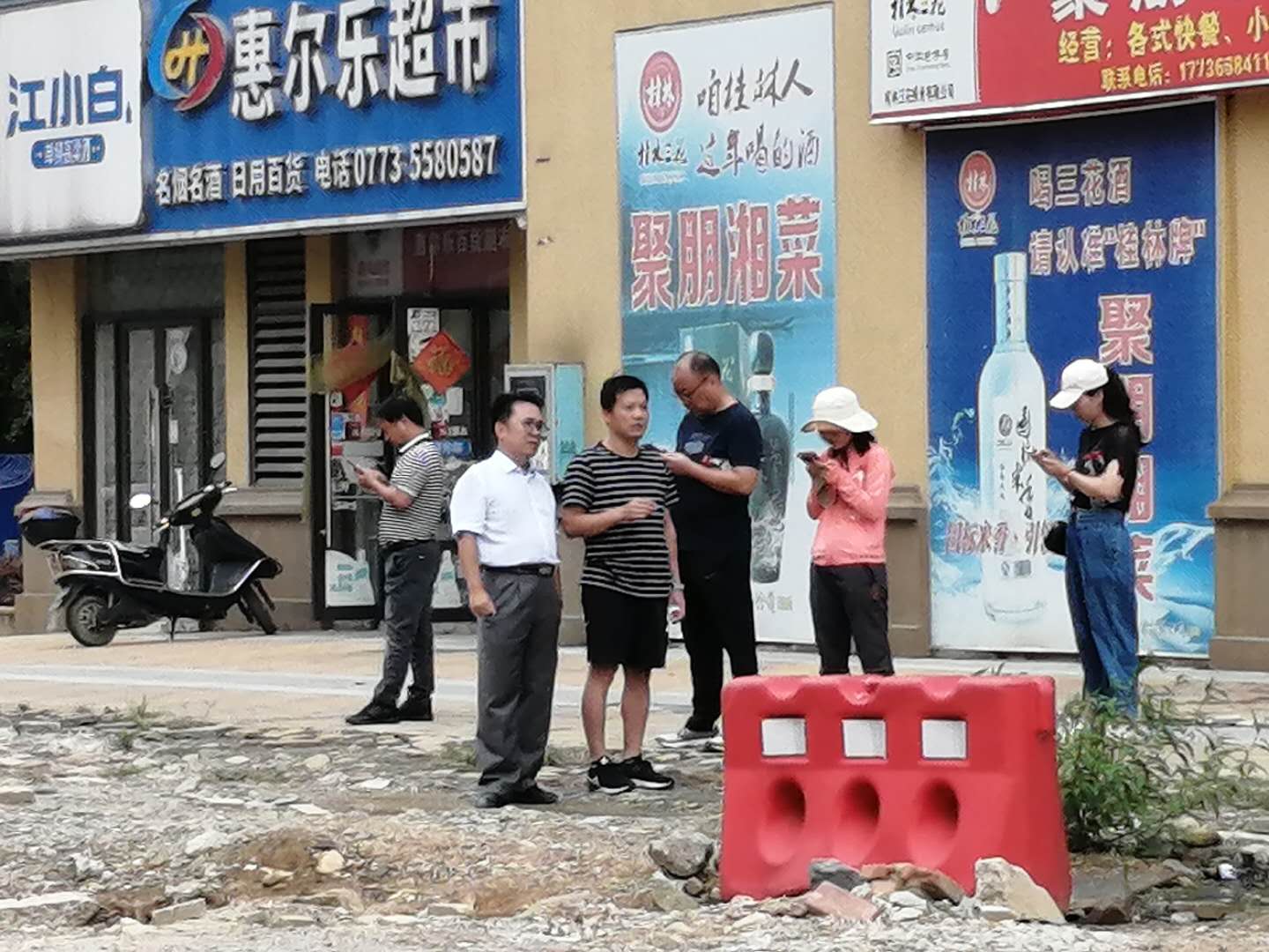▲于榮升(左二)、韋新華(右三)現(xiàn)場(chǎng)辦公