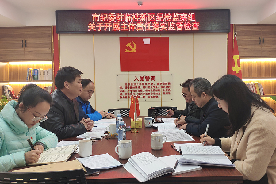 12月14日上午,市紀(jì)委派駐臨桂新區(qū)管委會紀(jì)檢監(jiān)察組副組長唐良平一行到新城投資集團(tuán),召開2020年度全面從嚴(yán)治黨主體責(zé)任落實(shí)情況檢查匯報(bào)會。