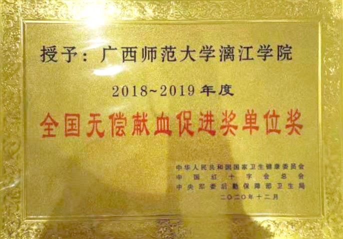 6月9日,由桂林市獻血委員會、桂林市衛(wèi)生健康委員會、桂林市紅十字會、中國人民解放軍聯勤保障部隊桂林聯勤保障中心衛(wèi)勤處主辦,桂林市中心血站、廣西師范大學漓江學院承辦的“喜迎建黨100周年桂林市慶祝2021年世界獻血者日無償獻血表彰文藝匯演”活動在漓江學院召開。漓江學院獲得全場唯一“全國無償獻血促進獎單位獎”。