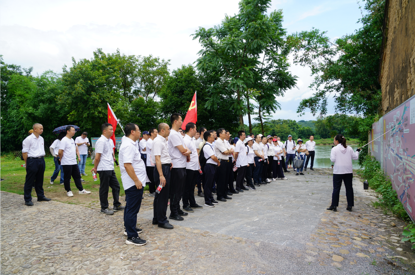 在全州縣鳳凰鎮(zhèn)鳳凰嘴渡口,全體黨員沿湘江戰(zhàn)役紅五軍、紅八軍、紅九軍行軍路線重走長(zhǎng)征路,親身體驗(yàn)紅軍長(zhǎng)征之艱辛……