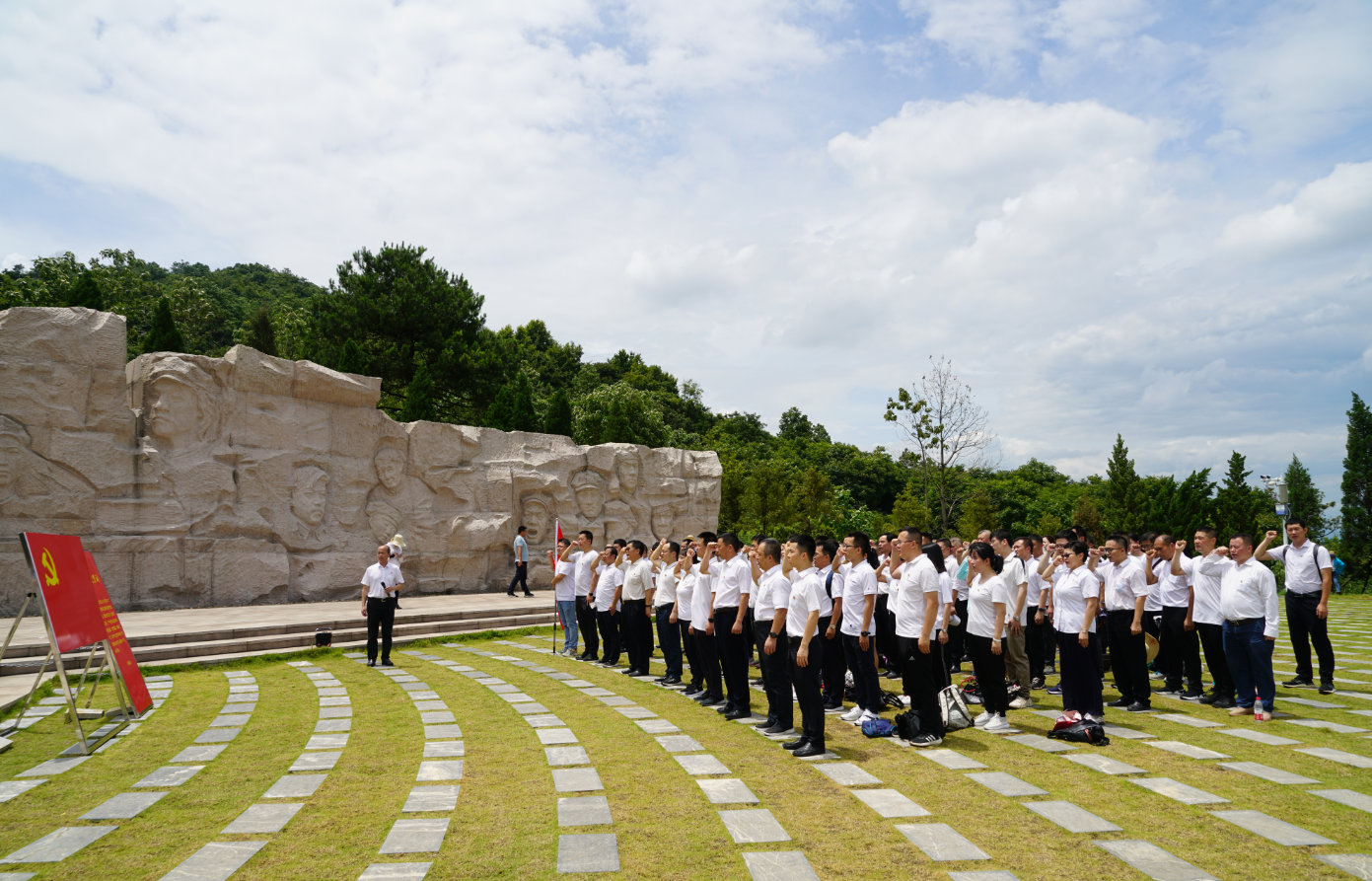 “一山一石一忠魂,一草一木一豐碑”。在紅軍長(zhǎng)征湘江戰(zhàn)役紀(jì)念園憑吊廣場(chǎng),“紅軍魂”雕塑巍然聳立,全體黨員向在湘江戰(zhàn)役中英勇犧牲的紅軍烈士默哀,敬獻(xiàn)花籃并三鞠躬,表達(dá)對(duì)革命烈士的深切緬懷和無限敬仰。面對(duì)鮮艷的中國(guó)共產(chǎn)黨黨旗,大家莊嚴(yán)列隊(duì),重溫入黨誓詞,用錚錚誓言表達(dá)矢志不渝守初心、奮發(fā)有為擔(dān)使命的堅(jiān)定信念。