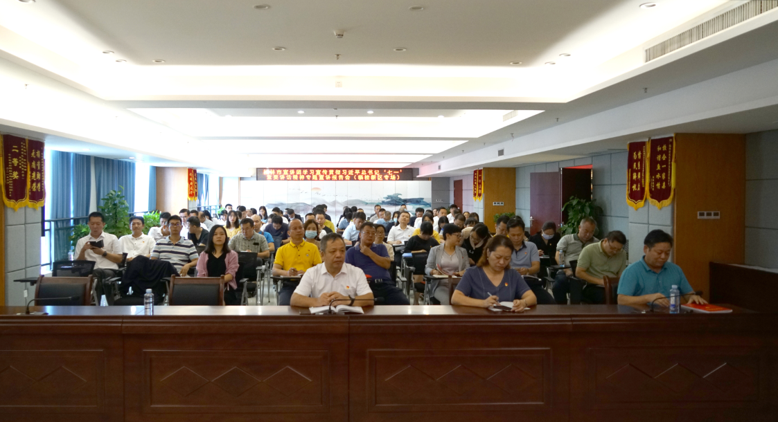 9月9日上午,新城投資集團(tuán)黨總支組織全體黨員參加由桂林新區(qū)舉辦的習(xí)近平總書記“七一”重要講話精神進(jìn)行專題宣講報告會。