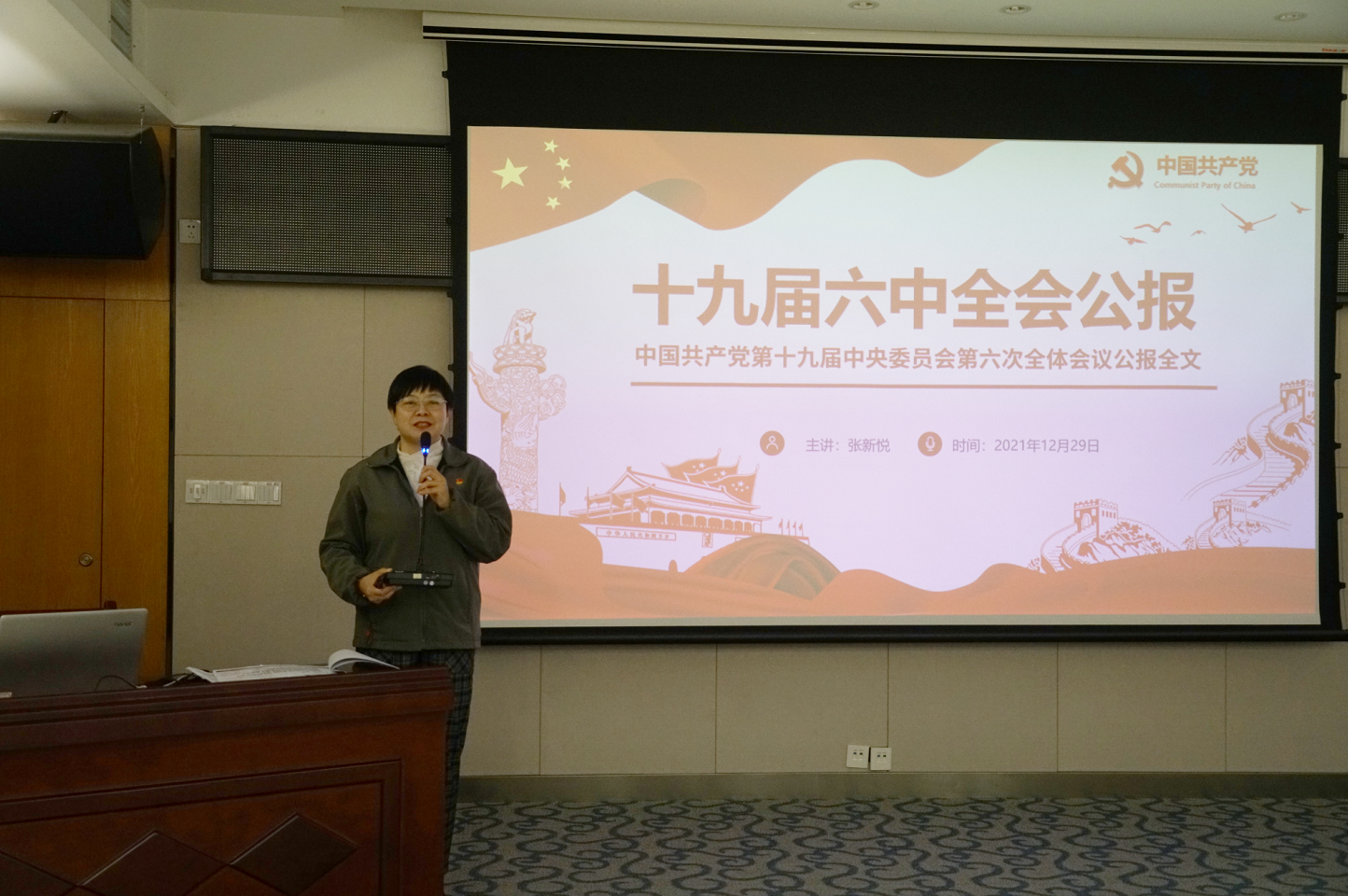 集團黨總支副書記、副總經(jīng)理鄧仁友,黨總支組織委員、工會主席譚力源,黨總支統(tǒng)戰(zhàn)委員、副總經(jīng)理張新悅分別以《深入學習貫徹十九屆六中全會精神,真抓實干,主動作為,推動公司高質(zhì)量發(fā)展》《學習貫徹黨的十九屆六中全會精神——我們走在趕考的大路上》《十九屆六中全會公報》為主題,圍繞學習貫徹十九屆六中全會精神和全會通過的《中共中央關(guān)于黨的百年奮斗重大成就和歷史經(jīng)驗的決議》,從深刻認識黨的十九屆六中全會的重大意義,黨的百年奮斗歷史經(jīng)驗和新時代中國特色社會主義的歷史性成就等方面進行了深入解讀。