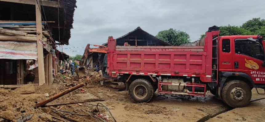當(dāng)天下午,譚力源會(huì)同臨時(shí)聯(lián)合黨支部副書(shū)記王偉財(cái)帶領(lǐng)成員單位中建八局廣西公司桂林項(xiàng)目部技術(shù)人員到達(dá)羅江村委受災(zāi)的4個(gè)自然村,開(kāi)展實(shí)地察看,初步形成了損毀、堵塞道路的清理方案。為更好的統(tǒng)籌推進(jìn)羅江村救災(zāi)工作,五通鎮(zhèn)黨委在羅江村委辦公地召集相關(guān)單位碰頭,并根據(jù)現(xiàn)場(chǎng)情況優(yōu)化調(diào)整推進(jìn)計(jì)劃。