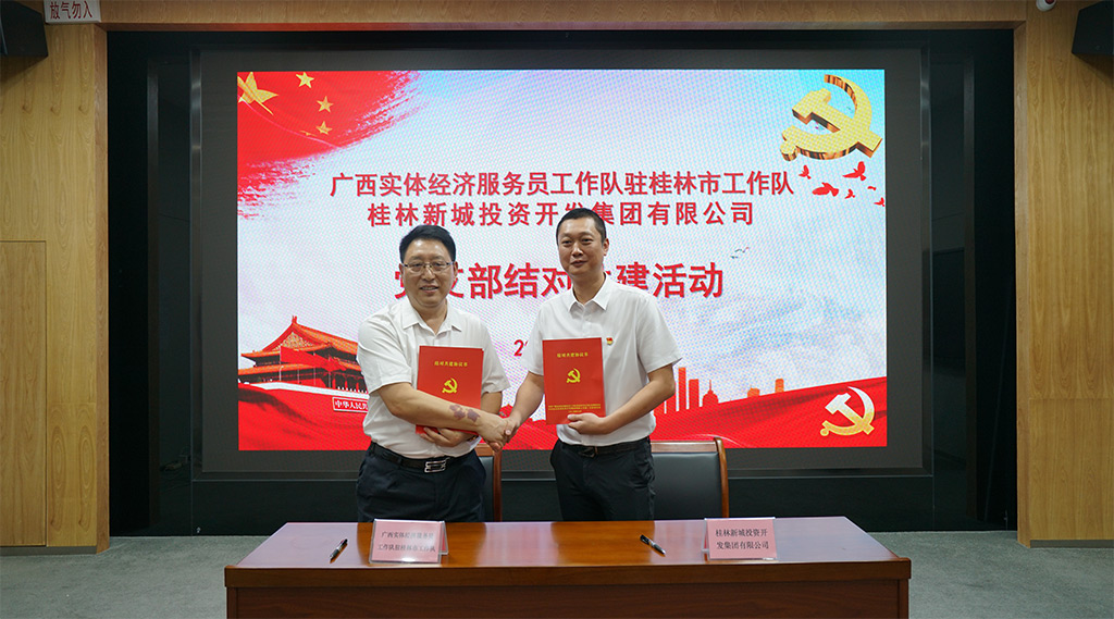 2024年7月19日,廣西實體經(jīng)濟服務(wù)員工作隊駐桂林市工作隊(以下簡稱“駐桂林市工作隊”)與桂林新城投資開發(fā)集團有限公司(以下簡稱“新城投集團”)在桂林市黨群服務(wù)中心舉行了一場別開生面的結(jié)對共建活動。此次活動旨在通過黨建聯(lián)建,共同探討和尋找國有企業(yè)如何在承擔(dān)政府項目融資與建設(shè)使命的同時,走出一條符合自身特點的轉(zhuǎn)型與高質(zhì)量發(fā)展之路。