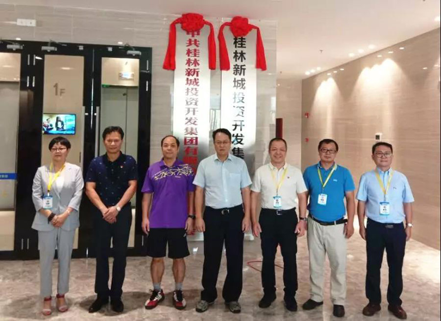 中共桂林市臨桂區(qū)委書記、中共桂林市臨桂新區(qū)工委第一副書記、桂林市臨桂新區(qū)管委會(huì)主任何新明,新區(qū)工委委員、管委會(huì)副主任覃正東,以及新城投資集團(tuán)領(lǐng)導(dǎo)班子共同為“中國(guó)共產(chǎn)黨桂林新城投資開發(fā)集團(tuán)有限公司支部委員會(huì)”、“桂林新城投資開發(fā)集團(tuán)有限公司”揭牌。