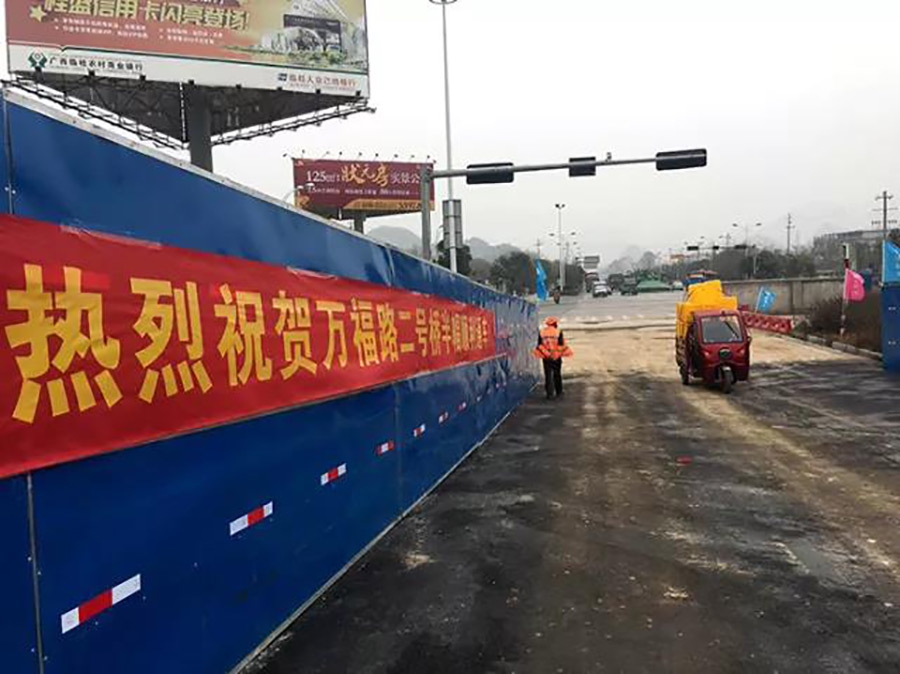 根據(jù)市政府、臨桂區(qū)及新區(qū)管委關(guān)于加快臨桂新區(qū)水系通航、實(shí)現(xiàn)橋梁通車的時(shí)間節(jié)點(diǎn)要求,新城投資集團(tuán)按照臨桂區(qū)、新區(qū)管委領(lǐng)導(dǎo)的指示精神,科學(xué)組織、精心施工、搶抓工期,逢節(jié)假日繼續(xù)加班加點(diǎn),于2018年1月19日順利實(shí)現(xiàn)了半幅臨時(shí)通車,同時(shí)橋下圍堰拆除,達(dá)到了水系通航條件。