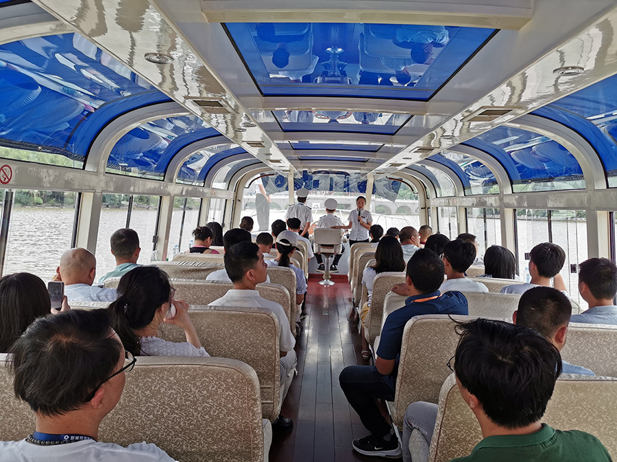 乘船游覽新區(qū)水系