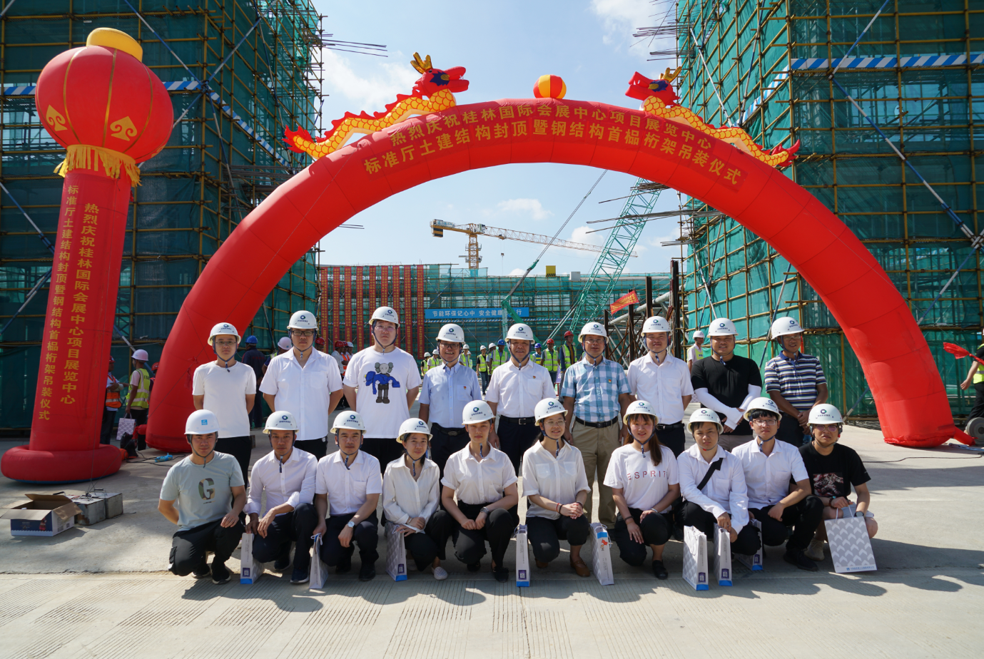 7月13日,桂林國(guó)際會(huì)展中心項(xiàng)目展覽中心標(biāo)準(zhǔn)廳土建結(jié)構(gòu)封頂暨鋼結(jié)構(gòu)首榀桁架吊裝儀式圓滿舉行。