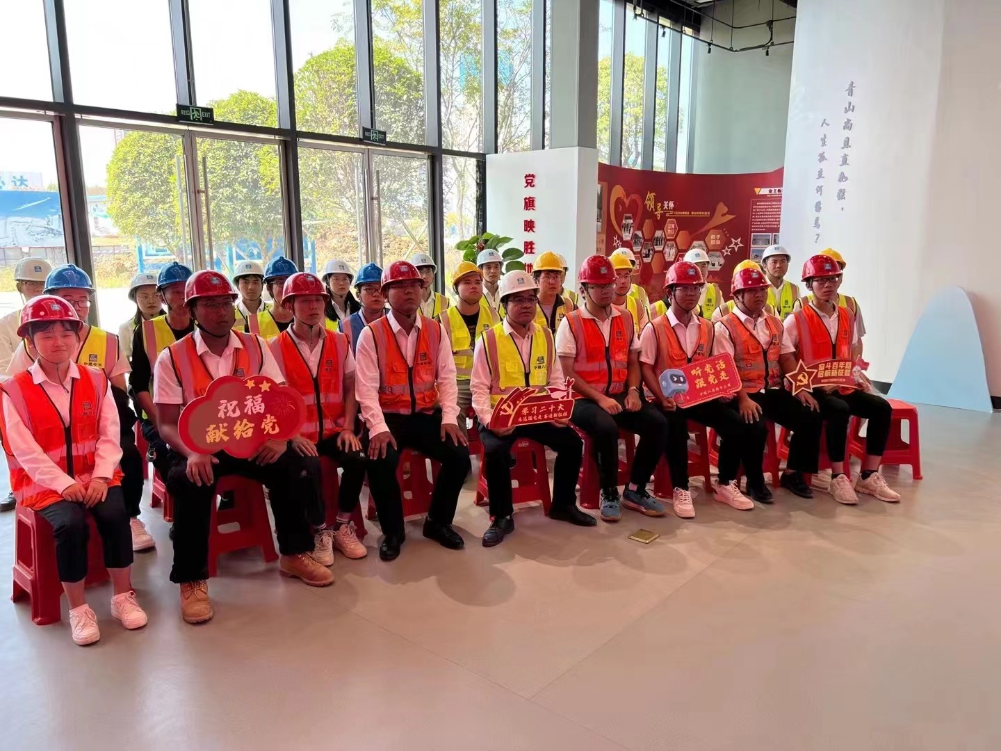 集團(tuán)辦公區(qū)、項(xiàng)目現(xiàn)場宣傳欄等位置張貼圖文、制作展板,利用電子屏滾動(dòng)播放知識(shí)要點(diǎn)、宣傳標(biāo)語、回放大會(huì)報(bào)告視頻,廣泛宣傳黨的二十大精神,構(gòu)筑起一道道亮麗的“紅色風(fēng)景線”,打造宣傳新陣地。