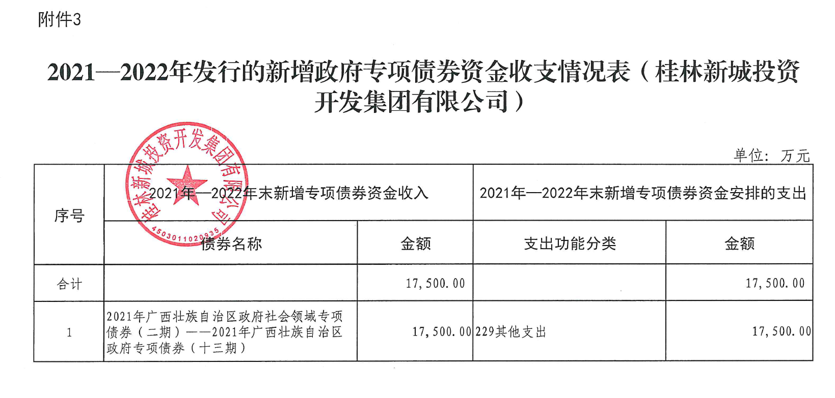 桂林新城投資開發(fā)集團(tuán)有限公司關(guān)于2021年-2022年發(fā)行的新增政府專項(xiàng)債券使用和管理情況