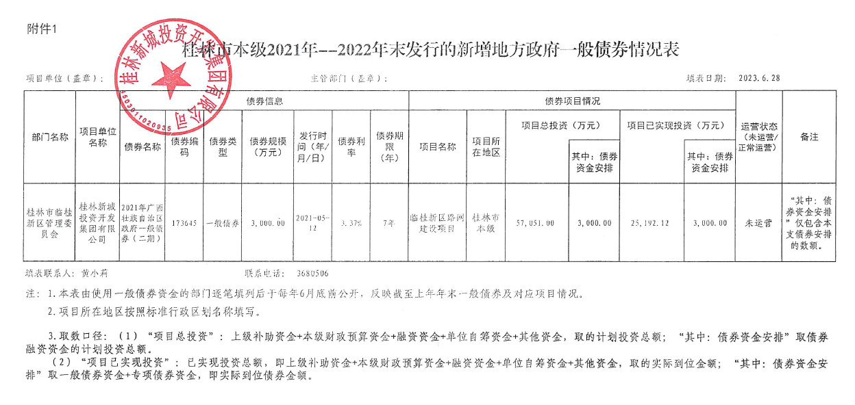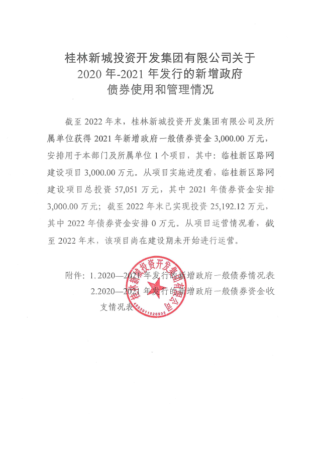 桂林新城投資開發(fā)集團有限公司關(guān)于2020年-2021年發(fā)行的新增政府債券使用和管理情況