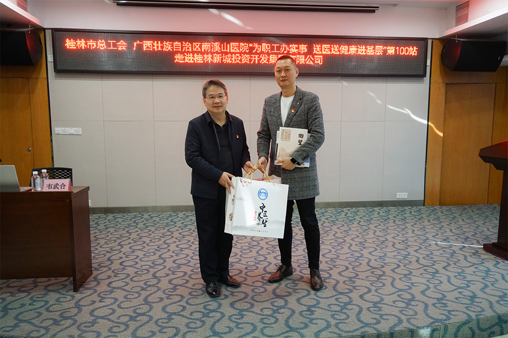 柳宏林對市總工會(huì)對活動(dòng)的全力支持與指導(dǎo),對新城投集團(tuán)提供周全的保障服務(wù)工作表示衷心的感謝,并贈(zèng)送醫(yī)院文化建設(shè)叢書、中醫(yī)養(yǎng)生禮盒。他指出,健康問題是重要的民生問題,也是工會(huì)組織關(guān)心職工的一項(xiàng)重要工作內(nèi)容,希望今后雙方加強(qiáng)溝通交流,互促共進(jìn),共同發(fā)展。