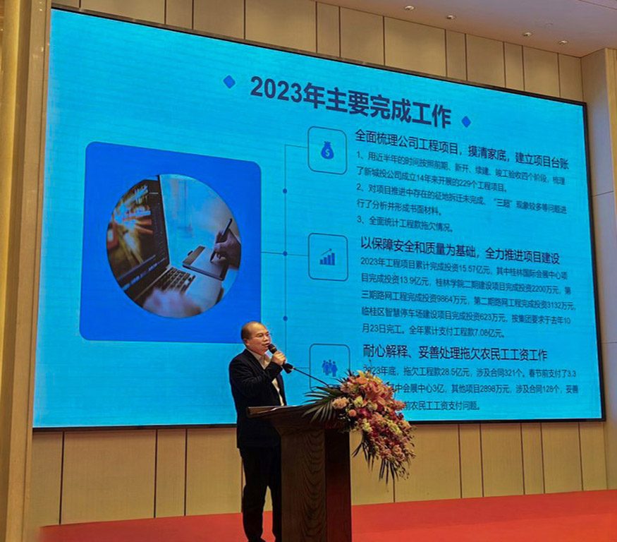 城建集團黨委副書記、副董事長、總裁肖笛波出席會議并講話。肖笛波首先對公司取得的成效給予肯定,并提醒要看到需補足的短板,對公司2024年的工作提出四點意見:一要千方百計謀劃轉(zhuǎn)型與高質(zhì)量發(fā)展。從平臺型公司轉(zhuǎn)型到經(jīng)營性公司是非常艱難的過程,公司要積極響應(yīng)城建集團內(nèi)部“深挖內(nèi)循環(huán),拓展外循環(huán)”的號召,著力在公司經(jīng)營發(fā)展上尋突破、找思路、謀出路。通過盤活現(xiàn)有資產(chǎn),拓展經(jīng)營業(yè)務(wù)等方式實現(xiàn)轉(zhuǎn)型與高質(zhì)量發(fā)展。二要想方設(shè)法做強做大做優(yōu)經(jīng)營性子公司。要全面梳理與子公司的治理關(guān)系、權(quán)責(zé)關(guān)系和組織關(guān)系,實行分類管理、分類考核。經(jīng)營性子公司要快速轉(zhuǎn)變觀念,與市場接軌,持續(xù)擴展經(jīng)營性業(yè)務(wù),不斷深挖新資源、開拓新市場,確保長期穩(wěn)健發(fā)展。三要科學(xué)合理降本增效。要建立健全高效的管理氛圍、有效的績效考核機制,通過業(yè)績考核優(yōu)勝劣汰,減員增效,使資源向優(yōu)秀人才傾斜,打造一支想干事、能干事、干成事、不出事的精英團隊。四要拿出有力舉措,有序的推進化債工作,在城建集團領(lǐng)導(dǎo)下,牢固樹立市場意識、經(jīng)營意識和轉(zhuǎn)型意識,全面提升轉(zhuǎn)型與高質(zhì)量發(fā)展新局面。
