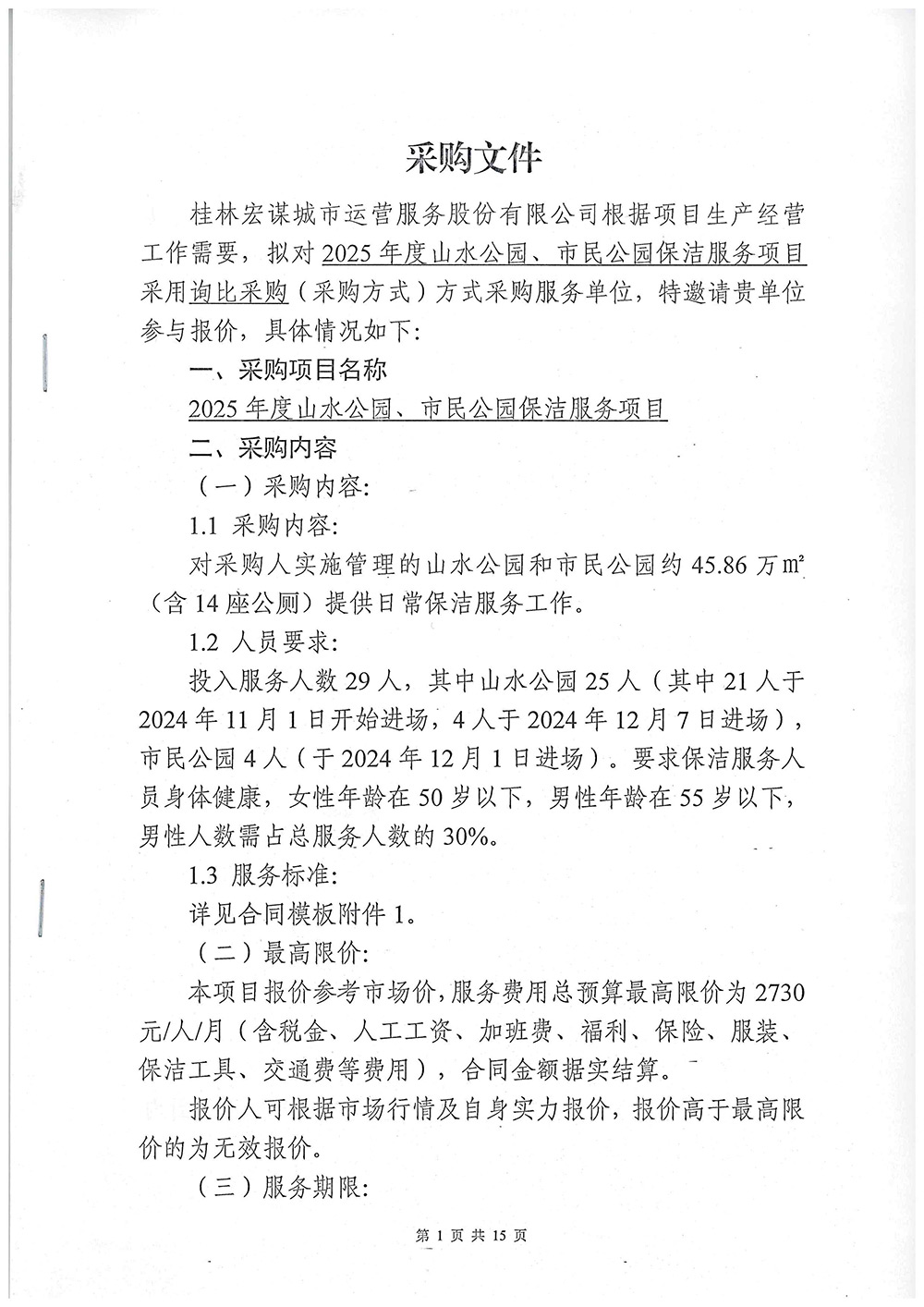 2025年度山水公園、市民公園保潔服務(wù)項(xiàng)目采購(gòu)文件