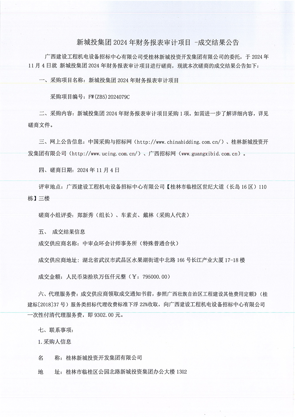 新城投集團2024年財務(wù)報表審計項目【FW(ZB5)2024079C】成交結(jié)果公告
