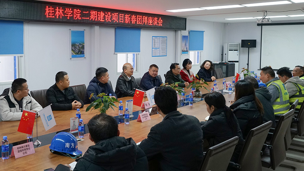 走訪結(jié)束后,在新城投集團(tuán)領(lǐng)導(dǎo)班子的陪同下,陶毅一行來(lái)到桂林學(xué)院二期建設(shè)項(xiàng)目,向全體參建人員致以新春的誠(chéng)摯祝福,并與各方參建單位開展新春團(tuán)拜座談會(huì)。