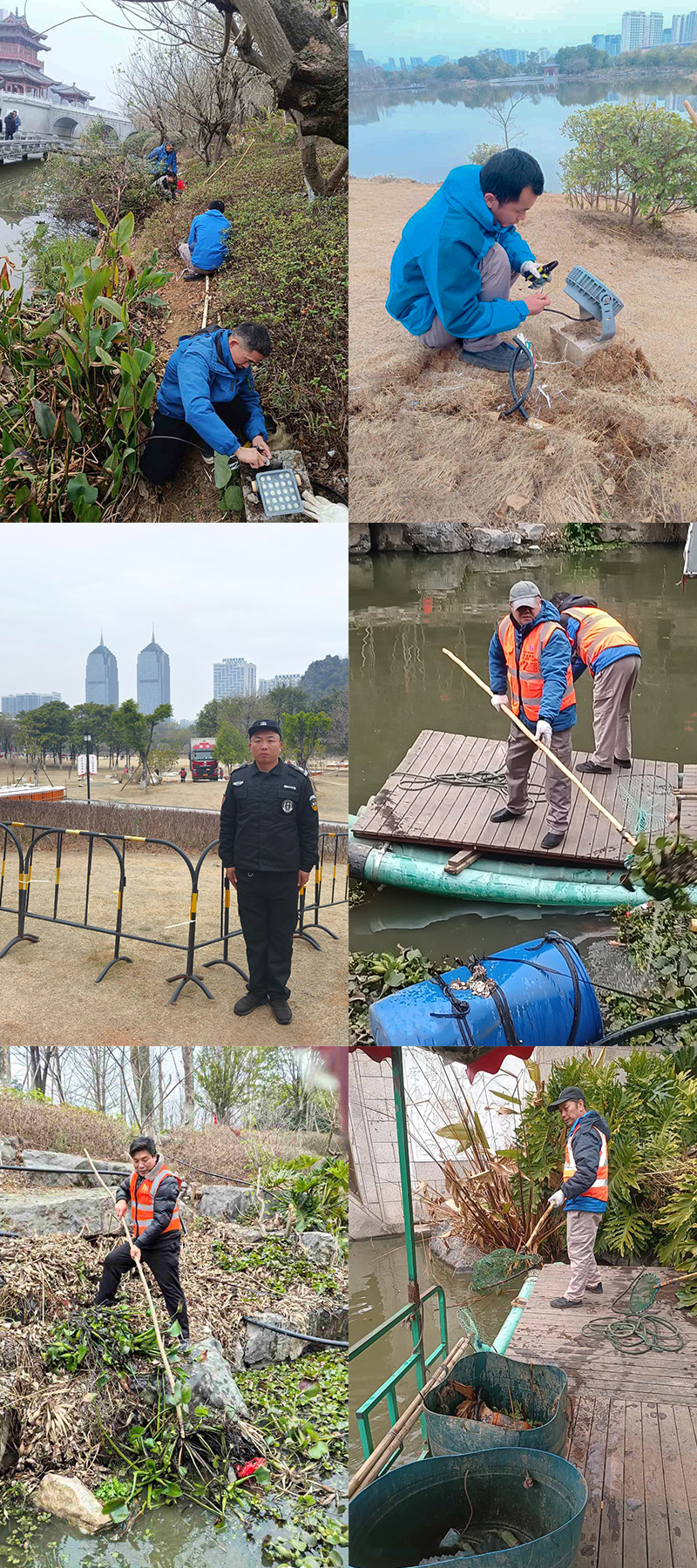 黨員同志帶頭成立工作小組,對山水公園的環(huán)境衛(wèi)生、園林綠化、水系水域、電力系統(tǒng)、照明設(shè)施等關(guān)鍵領(lǐng)域進(jìn)行全面、細(xì)致的檢查與維護(hù)工作,同時,加強(qiáng)山水公園安保力量,加大煙花燃放點的巡查力度,安排專人對煙花組裝區(qū)域?qū)嵤﹪?yán)密守護(hù),并全力配合三大通信運(yùn)營商及其他相關(guān)部門做好用電取電工作,有效保障了活動的順利進(jìn)行,確?;顒赢?dāng)日向市民呈現(xiàn)一個安全、舒適的活動環(huán)境。