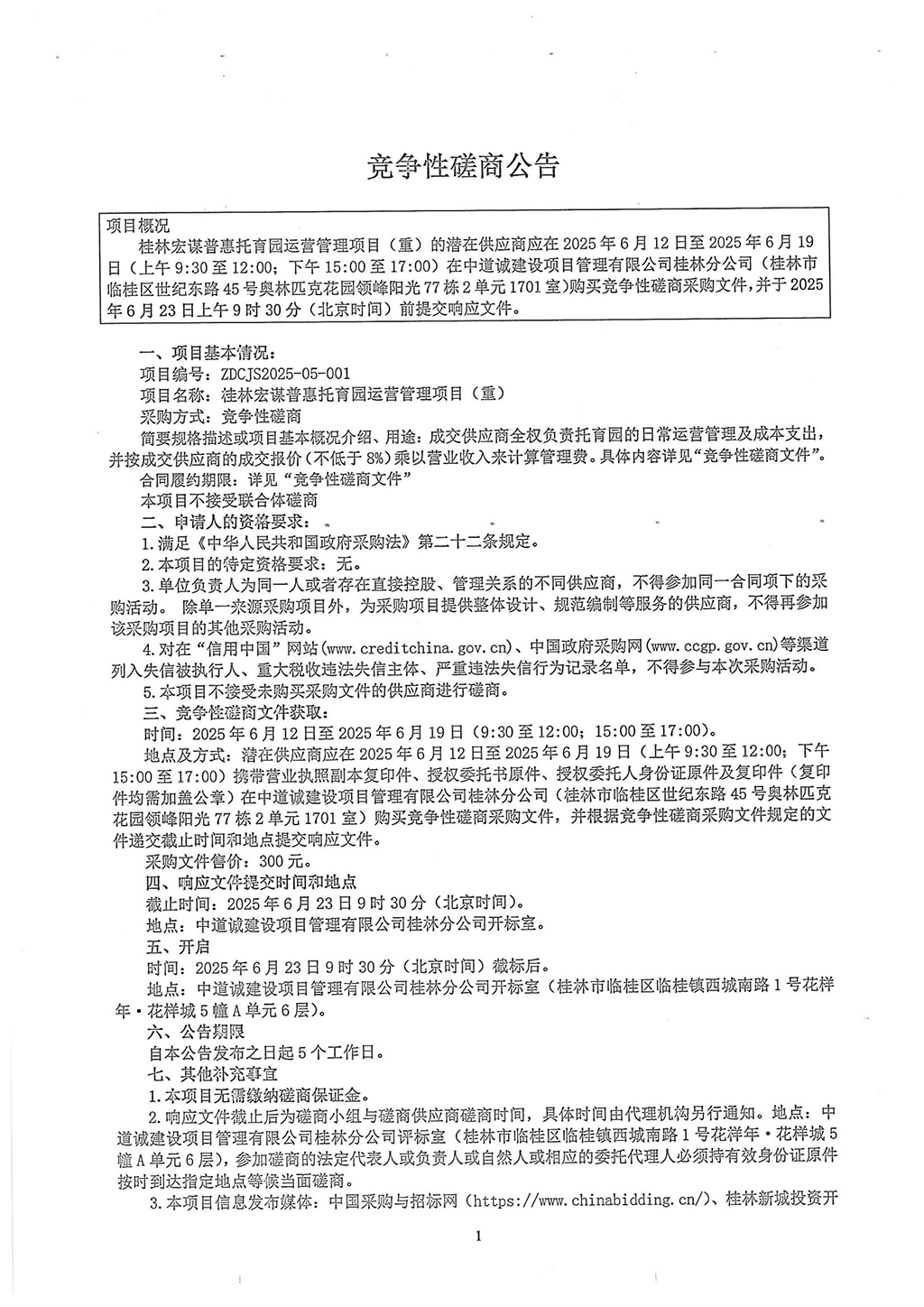 桂林宏謀普惠托育園運營管理項目(重)競爭性磋商公告