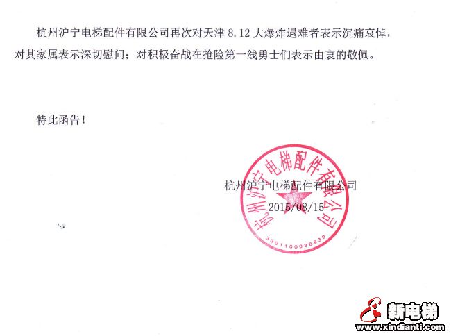 Great Love in the Elevator Industry: Voices from Huning Elevator Accessories on the Tianjin Explosion Hazard