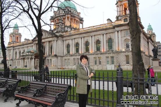 圖片說明:遼寧東奧電梯現(xiàn)任總經(jīng)理趙靜晨女士在英國貝爾法斯特建筑前留念