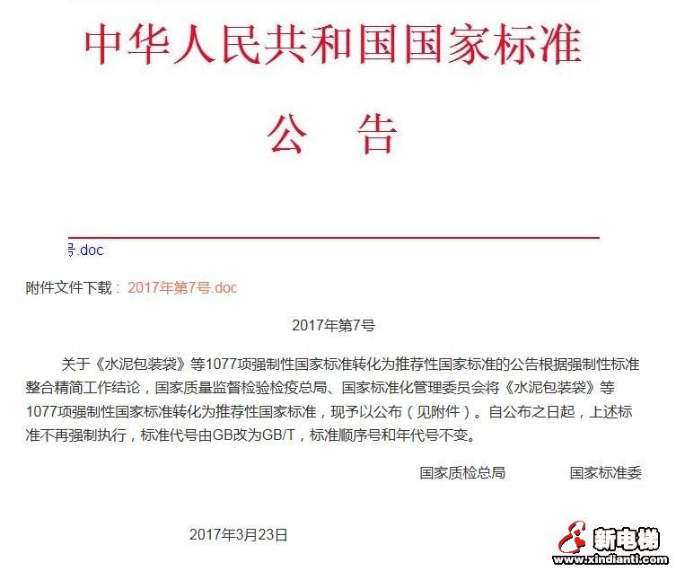 自2017年3月23日起,上述標(biāo)準(zhǔn)不再強(qiáng)制執(zhí)行,標(biāo)準(zhǔn)代號由GB改為GB/T,標(biāo)準(zhǔn)順序號和年代號不變。