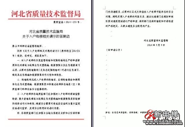 入戶電梯河北省局和院里發(fā)文