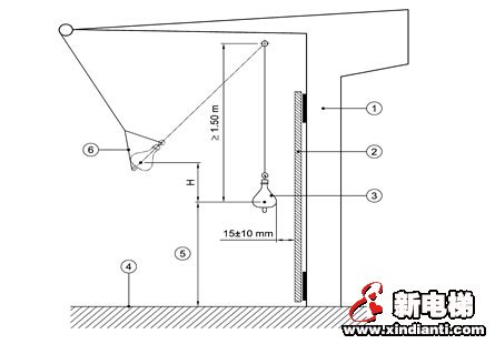 J4.4 擺錘應(yīng)撞擊在寬度方向?yàn)槊姘宓闹悬c(diǎn),高度方向?yàn)槊姘逶O(shè)計(jì)地平面上方(1.0±0.1)m處。對(duì)于層門,該高度值見7.2.3.8。