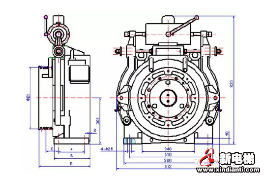 制動系統(tǒng)的制動力矩按曳引機(jī)額定轉(zhuǎn)矩的 2.0 倍整定,制動力矩的大小與彈簧的壓縮量成正比。