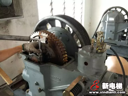 四、現(xiàn)底坑、轎頂同事可一齊到機房同時拆曳引輪固定螺絲(6顆)和蝸箱上蓋,拆蝸箱蓋時注意密封圈,不能損壞,可在螺絲位用手錘撞開,在螺絲位真不小搞爛一點也不至于會漏油,都OK后用M20螺絲在曳引輪內(nèi)側(cè)將舊曳引輪逼出來(看圖)。2個人同時均勻的。逼出來后放一側(cè),將蝸牙用吊起,現(xiàn)可以將舊曳引輪取出,再將新曳引輪放入(事先將新的曳引輪出廠時的防繡油洗干凈)