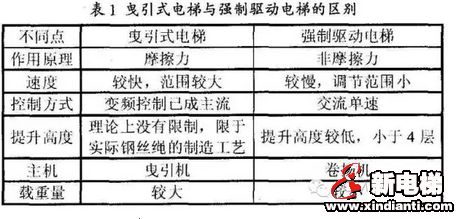 下圖列舉了曳引式電梯和強(qiáng)制驅(qū)動(dòng)電梯的區(qū)別