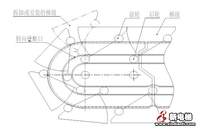 1) 將需要安裝梯級的曳引鏈軸點動至下端折彎處;