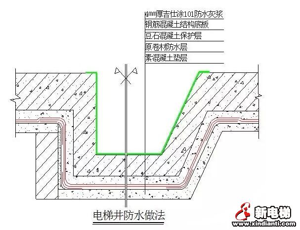 核心提示:電梯井滲漏主要原因 (1)因底板先做防水層,再現(xiàn)澆側(cè)壁混凝土墻,這樣導(dǎo)致電梯井側(cè)壁混凝土墻跟底板斷層。原施工防水層就沒有起到應(yīng)有的防水效果,這樣地下水就會(huì)不斷從斷層處滲漏進(jìn)電梯井內(nèi)。 (2)土建施工時(shí),底板的大量積水沒有排干、排盡,而直接把混凝土
