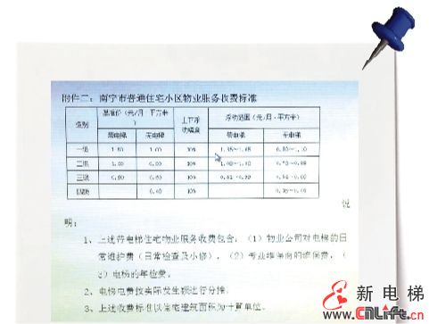 對(duì)此質(zhì)疑,雷主任解釋說(shuō),自從2009年南寧市物價(jià)局出臺(tái)《關(guān)于印發(fā)南寧市普通住宅小區(qū)物業(yè)服務(wù)等級(jí)及收費(fèi)標(biāo)準(zhǔn)的通知》(下稱(chēng)《通知》)開(kāi)始,他們只收取相應(yīng)物業(yè)費(fèi),不再收取電梯使用費(fèi),電梯維保和更換小配件的費(fèi)用由物業(yè)公司承擔(dān),更換大配件則要?jiǎng)佑霉簿S修資金或業(yè)主集資。在《通知》下發(fā)前,維保費(fèi)用基本都用在電梯維護(hù)和更換配件上了。目前,公共維修資金已不足,要業(yè)主集資修電梯。