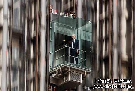 倫敦勞埃德保險公司大廈的電梯。透明玻璃梯廂顯示獨特。