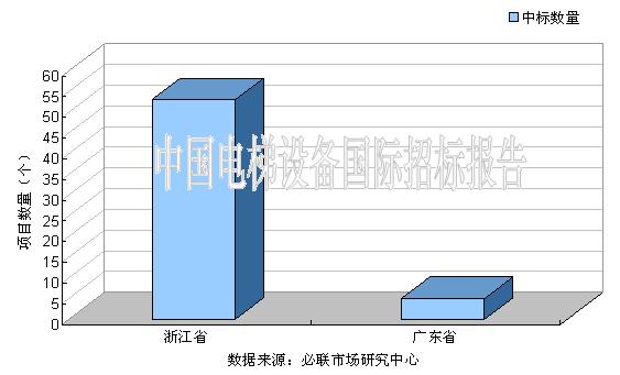 2011年1季度我國電梯國際招標(biāo)市場的中標(biāo)項(xiàng)目地區(qū)分布主要集中在2個(gè)省市,分別為浙江省,廣東省,這兩省市表現(xiàn)一直良好。從項(xiàng)目數(shù)量來看,浙江的項(xiàng)目數(shù)量遠(yuǎn)遠(yuǎn)高于其它省市。
